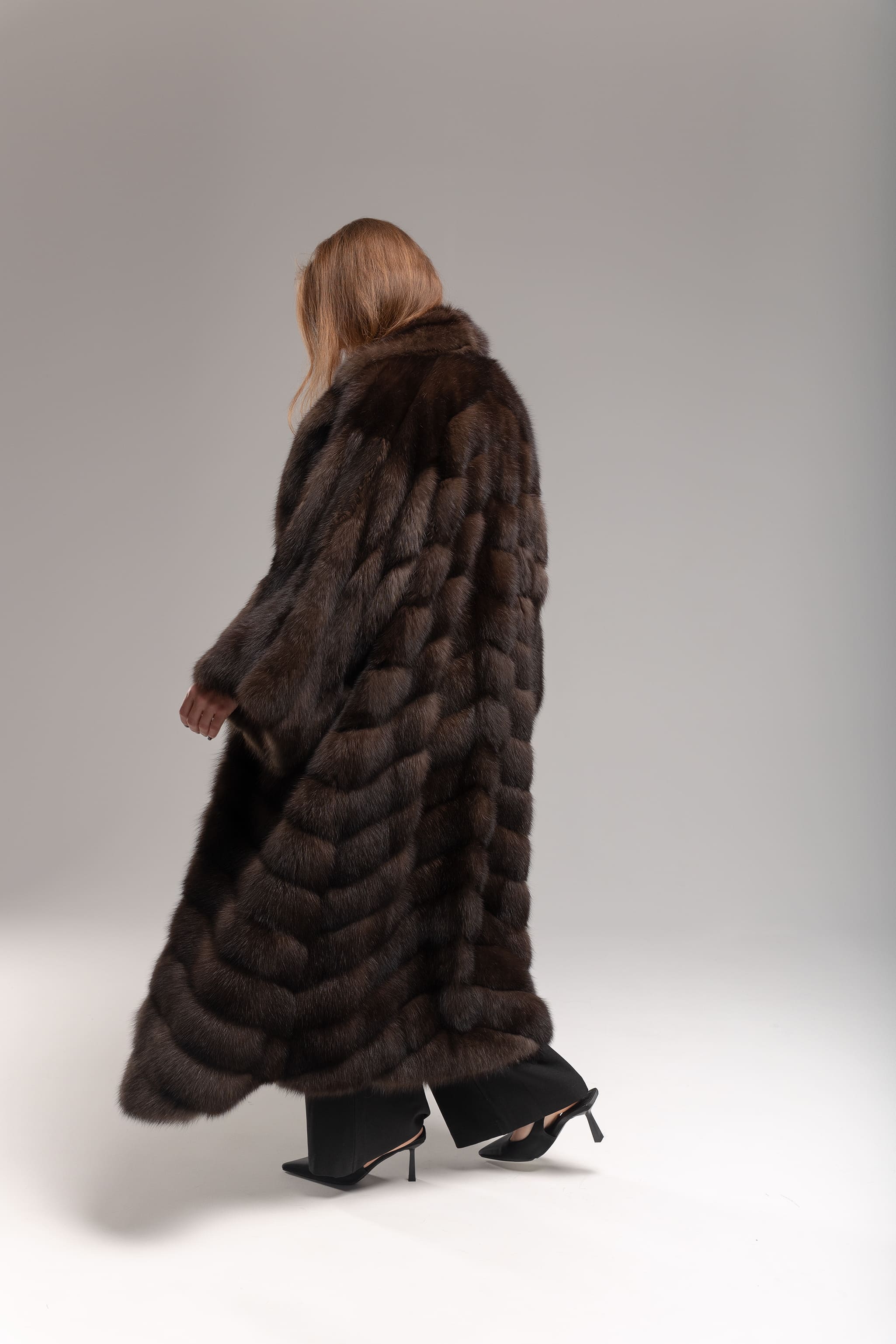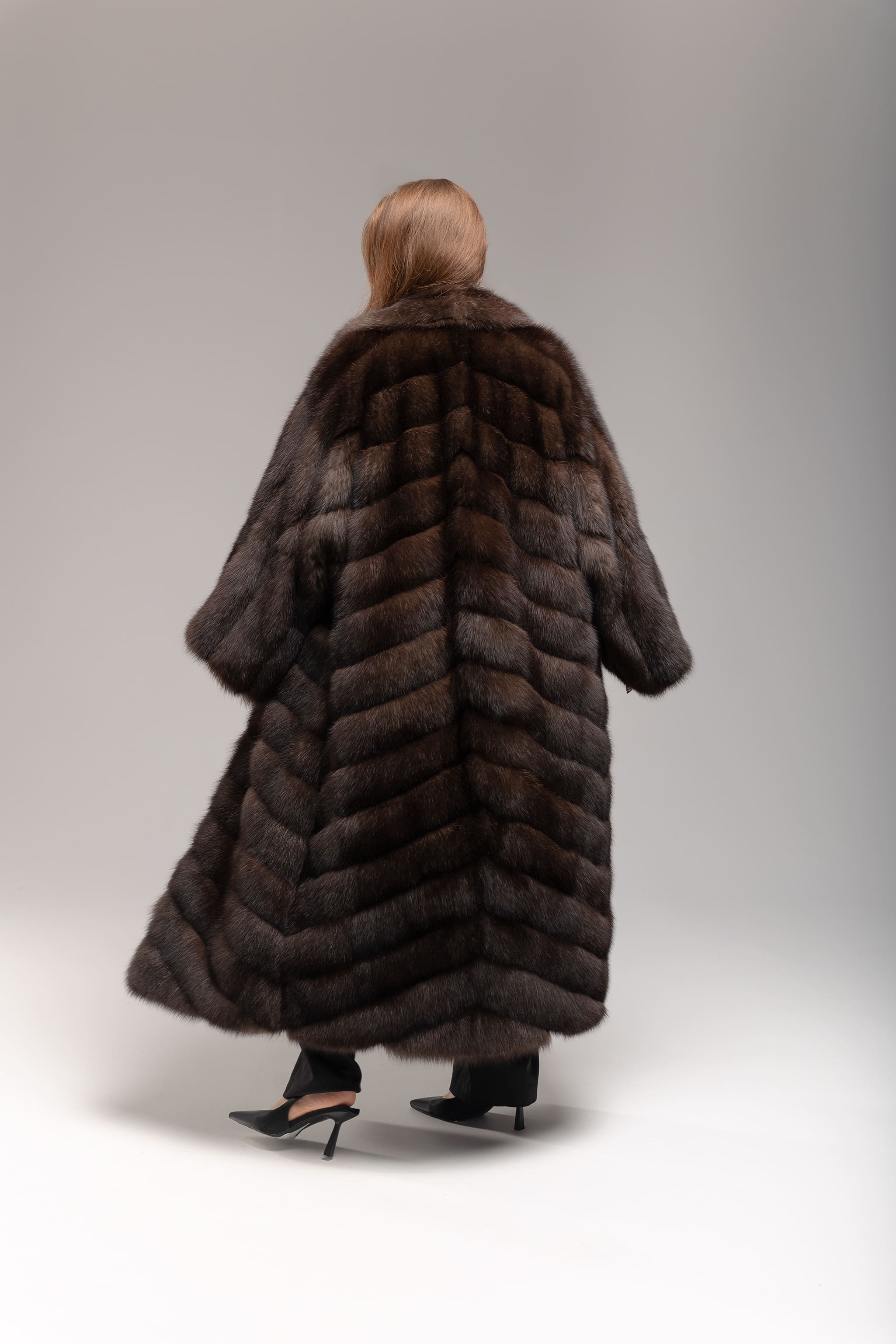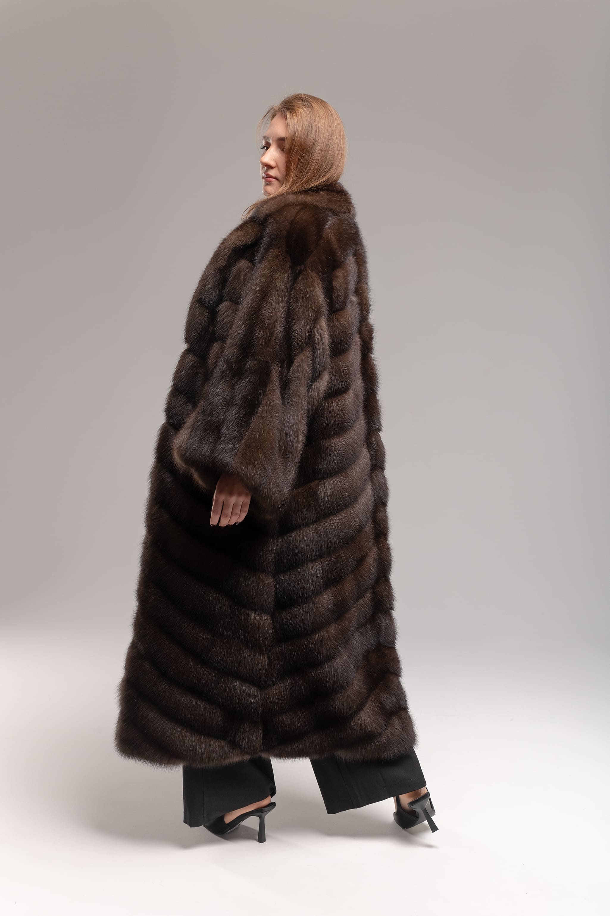 Шуба выполнена из дикого баргузинского соболя в цвете №3 и седине №2/3