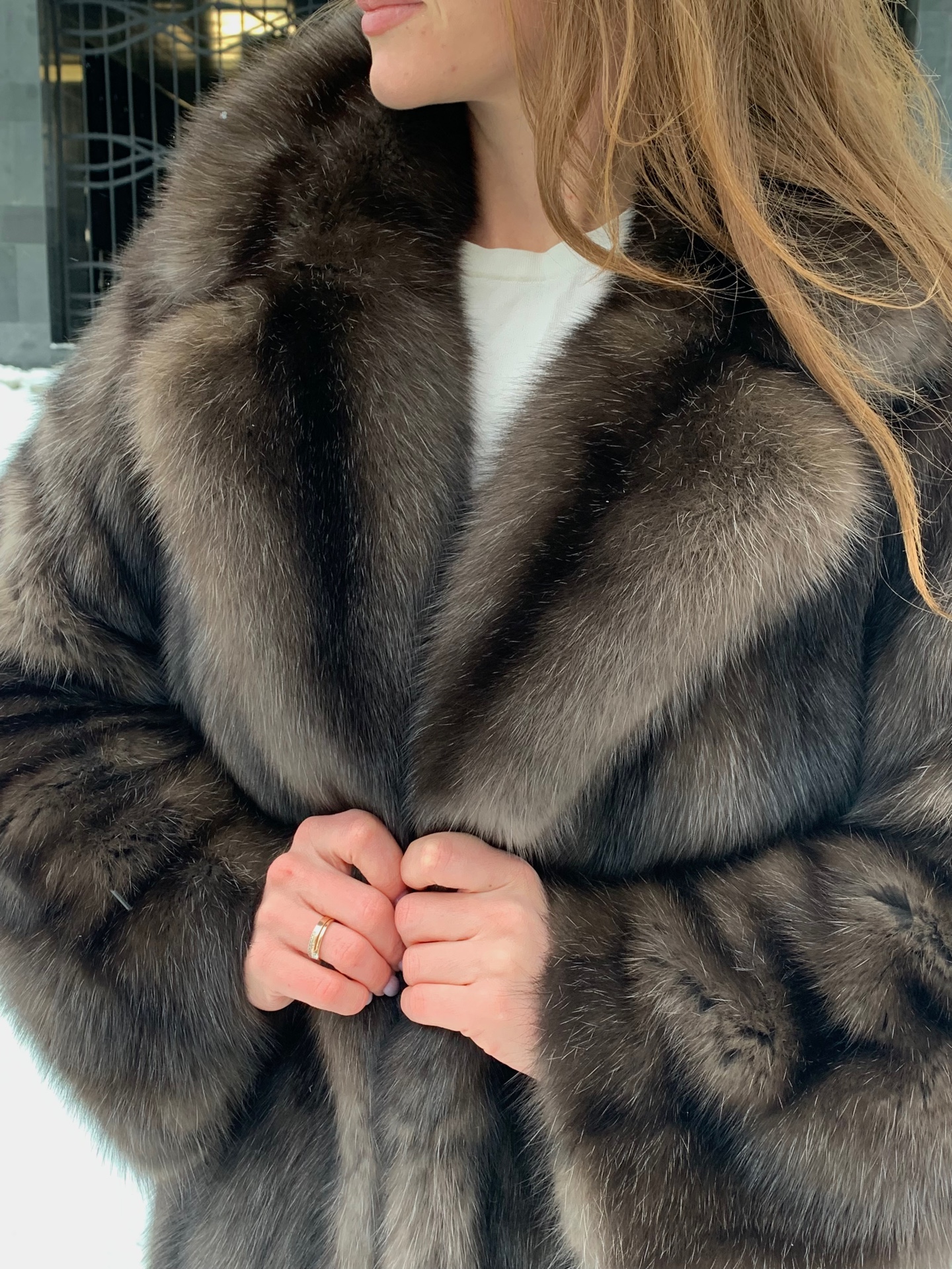 Шуба из соболя 120см в седине 3 диагональная кладь шалевый воротник