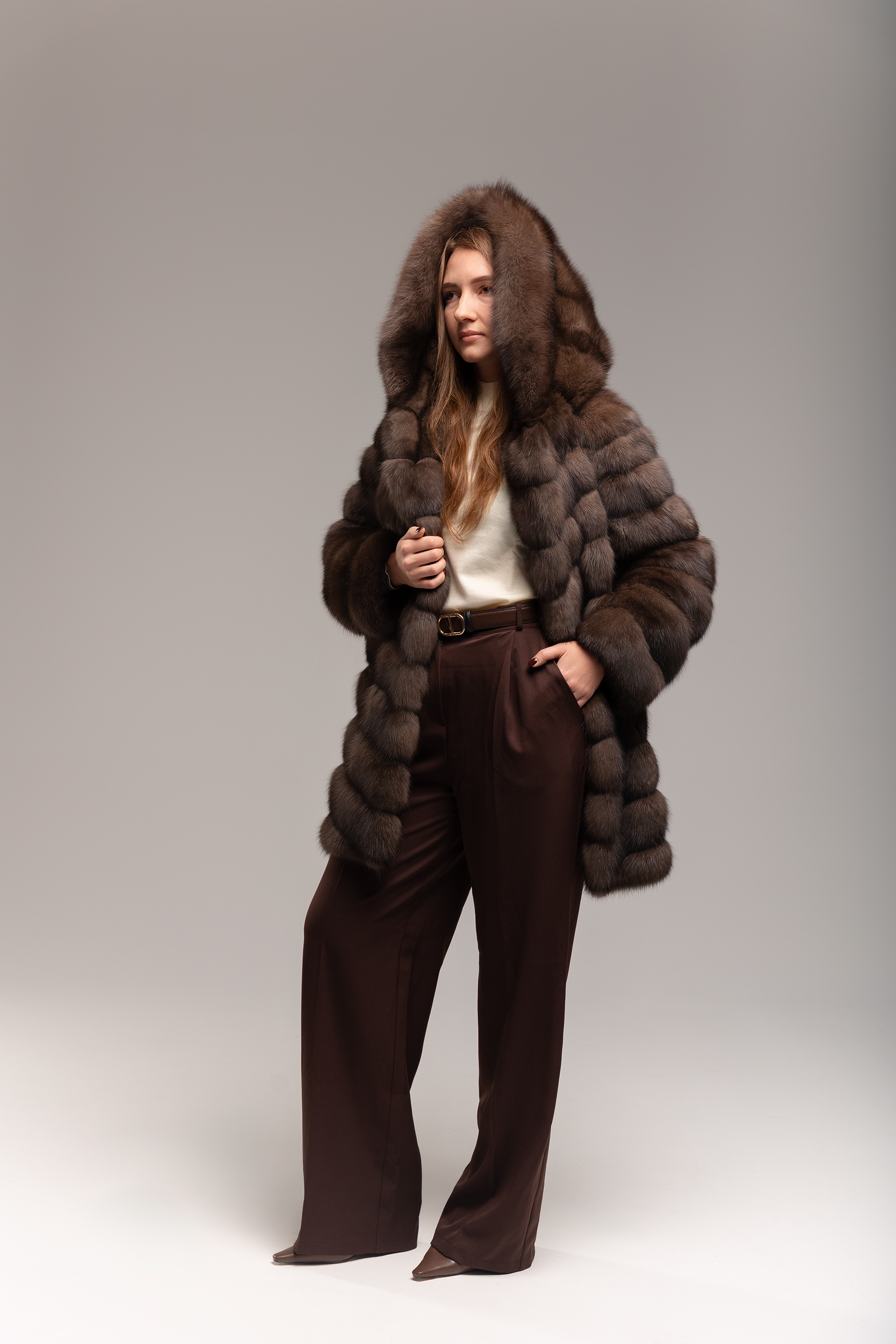 Шуба из соболя с капюшоном 80 см