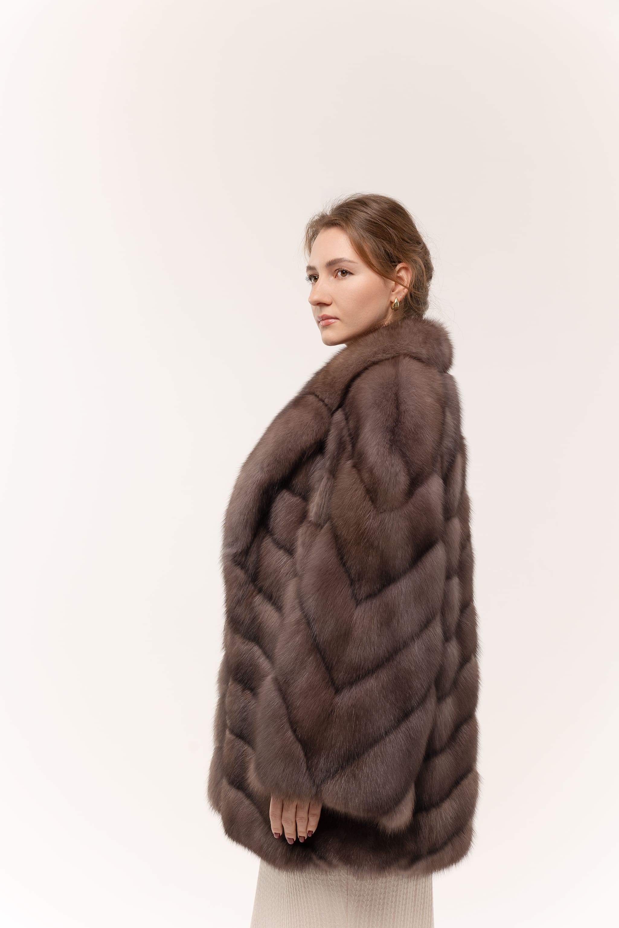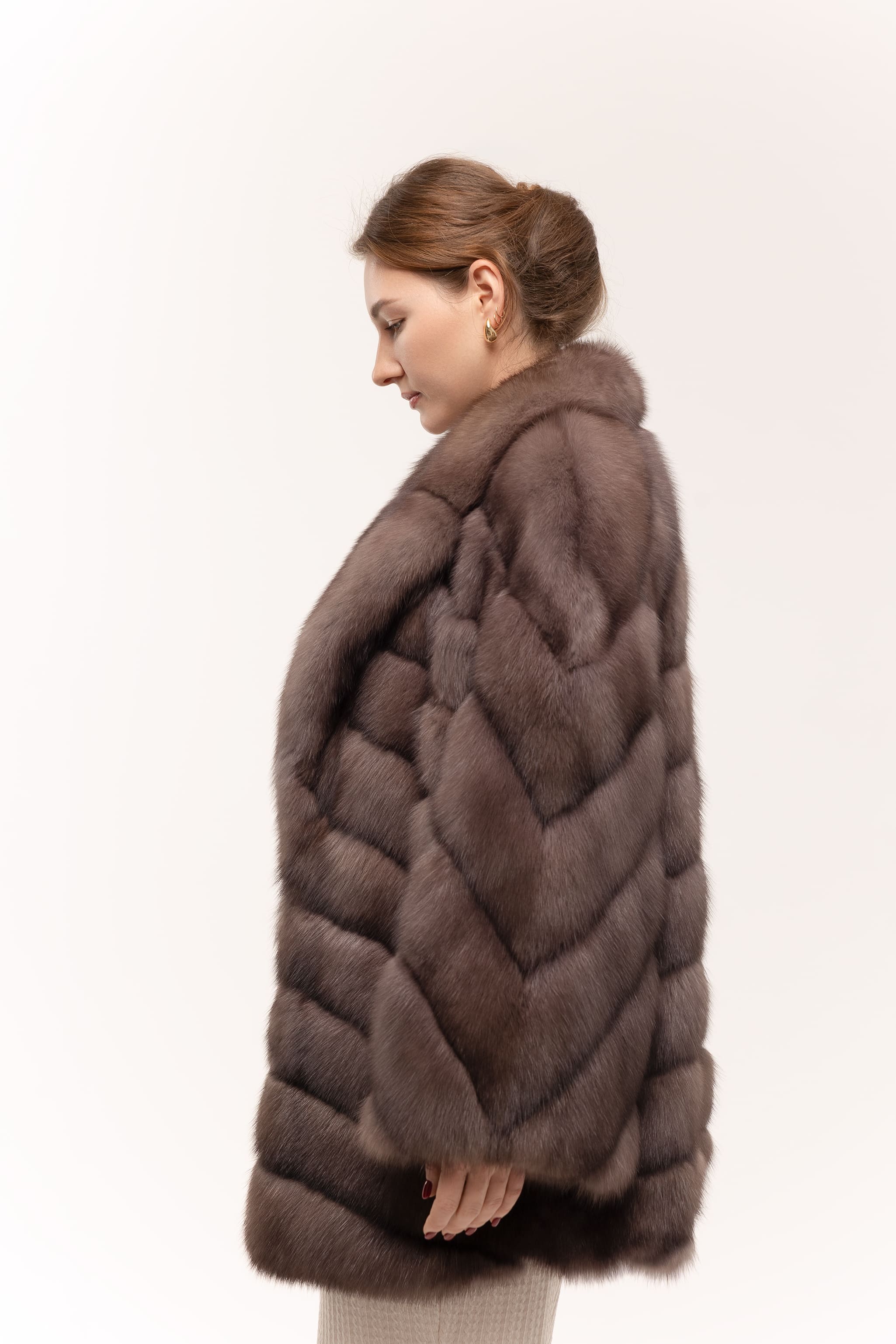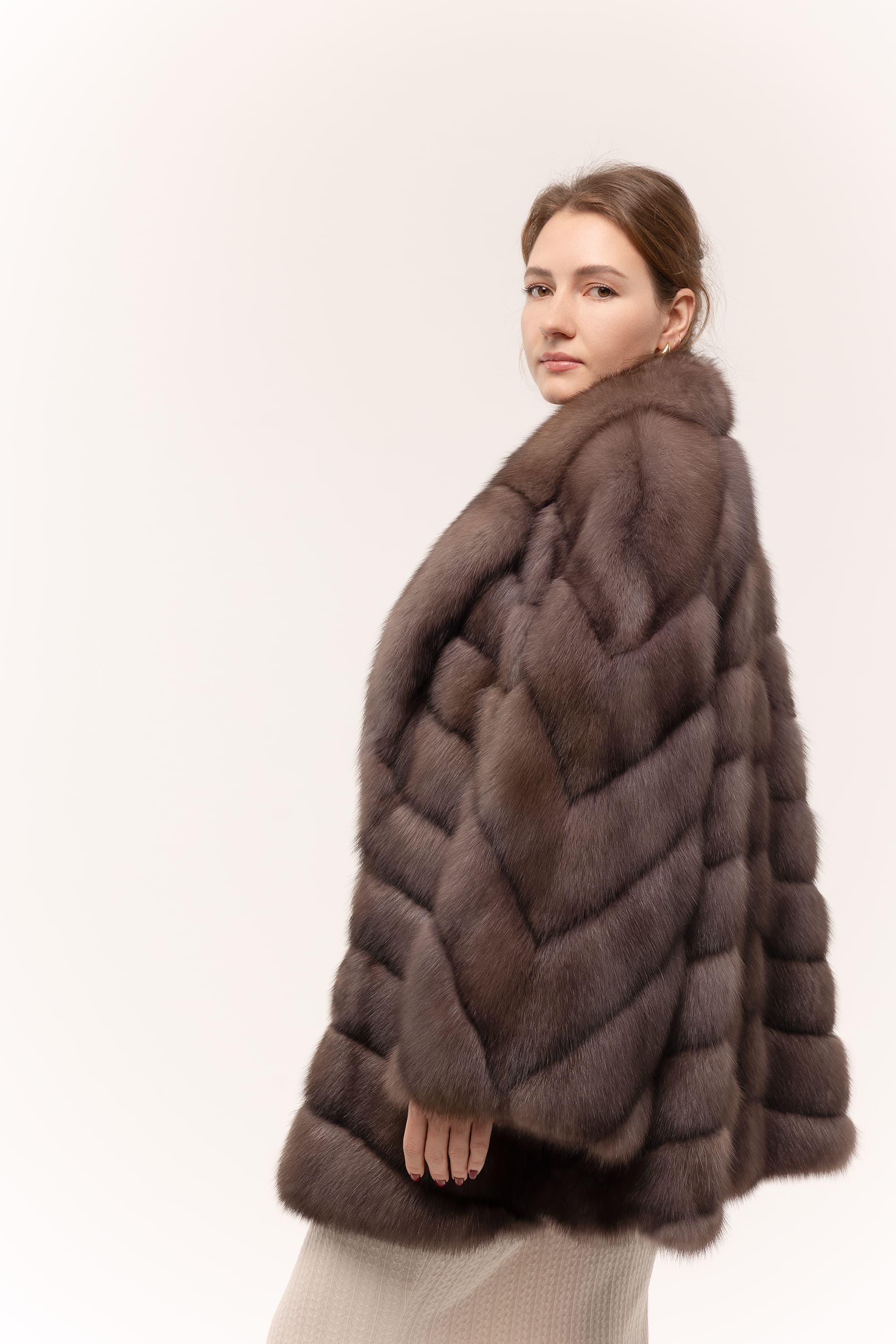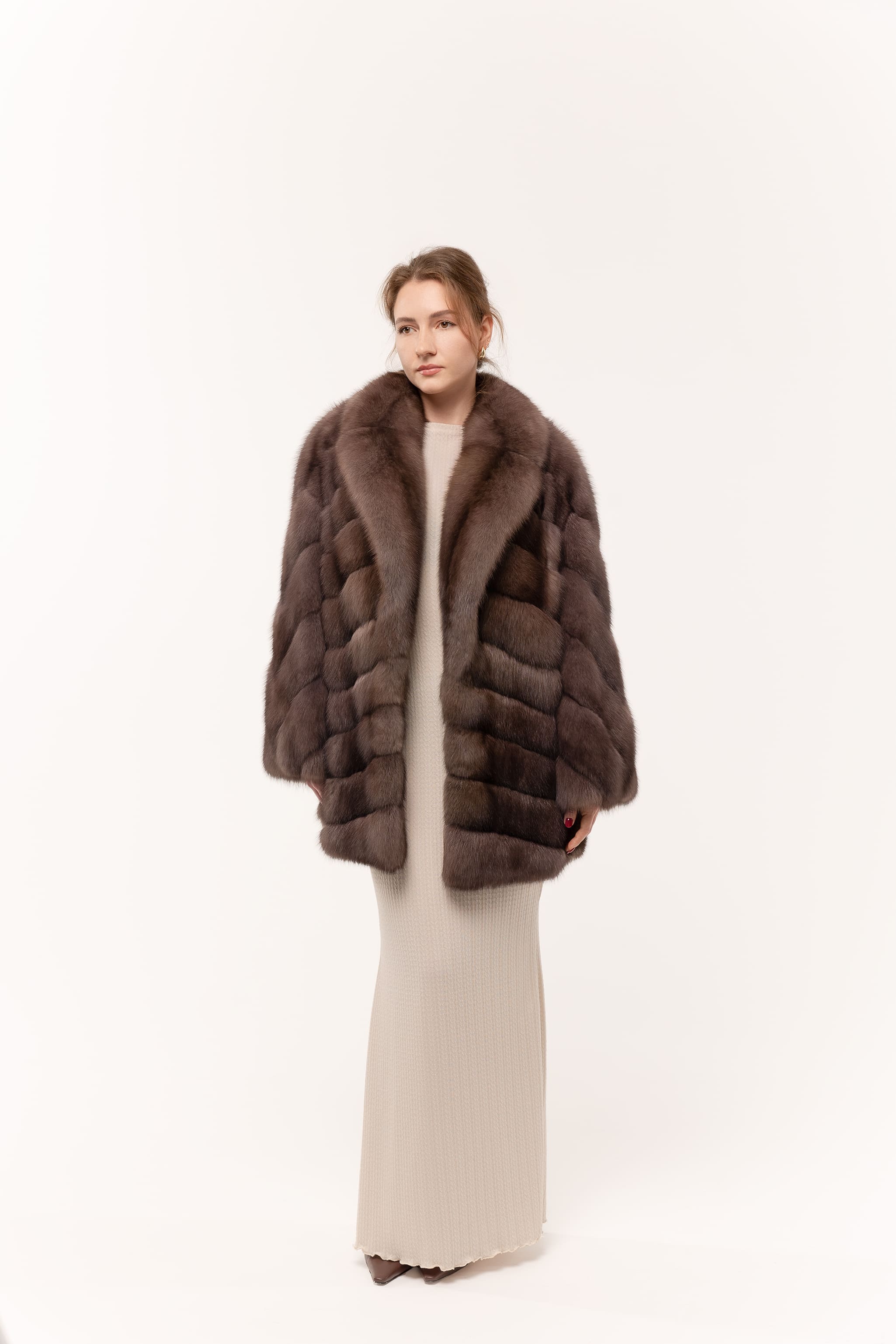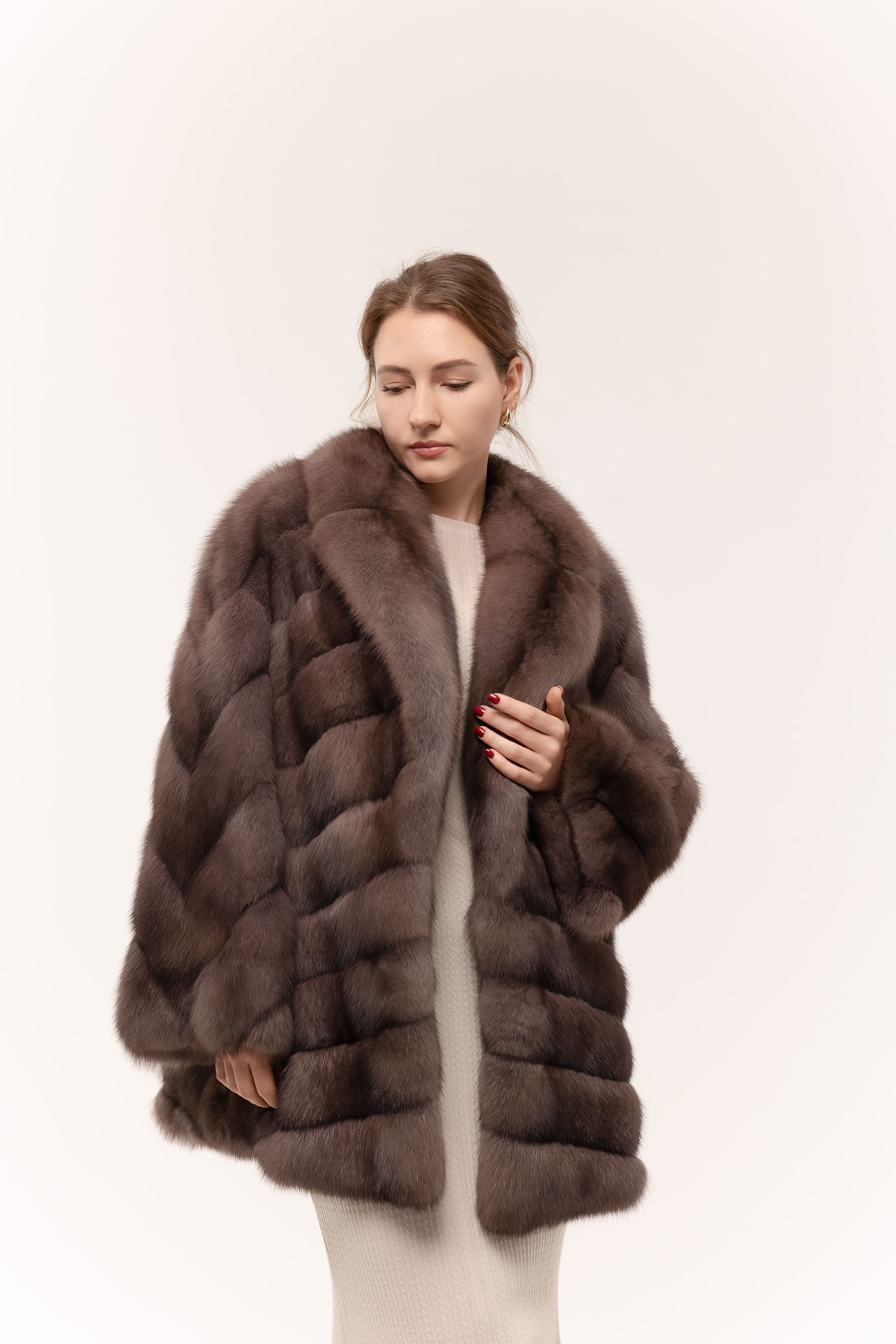 Шуба из соболя в цвете тор-тор 75см с широким рукавом