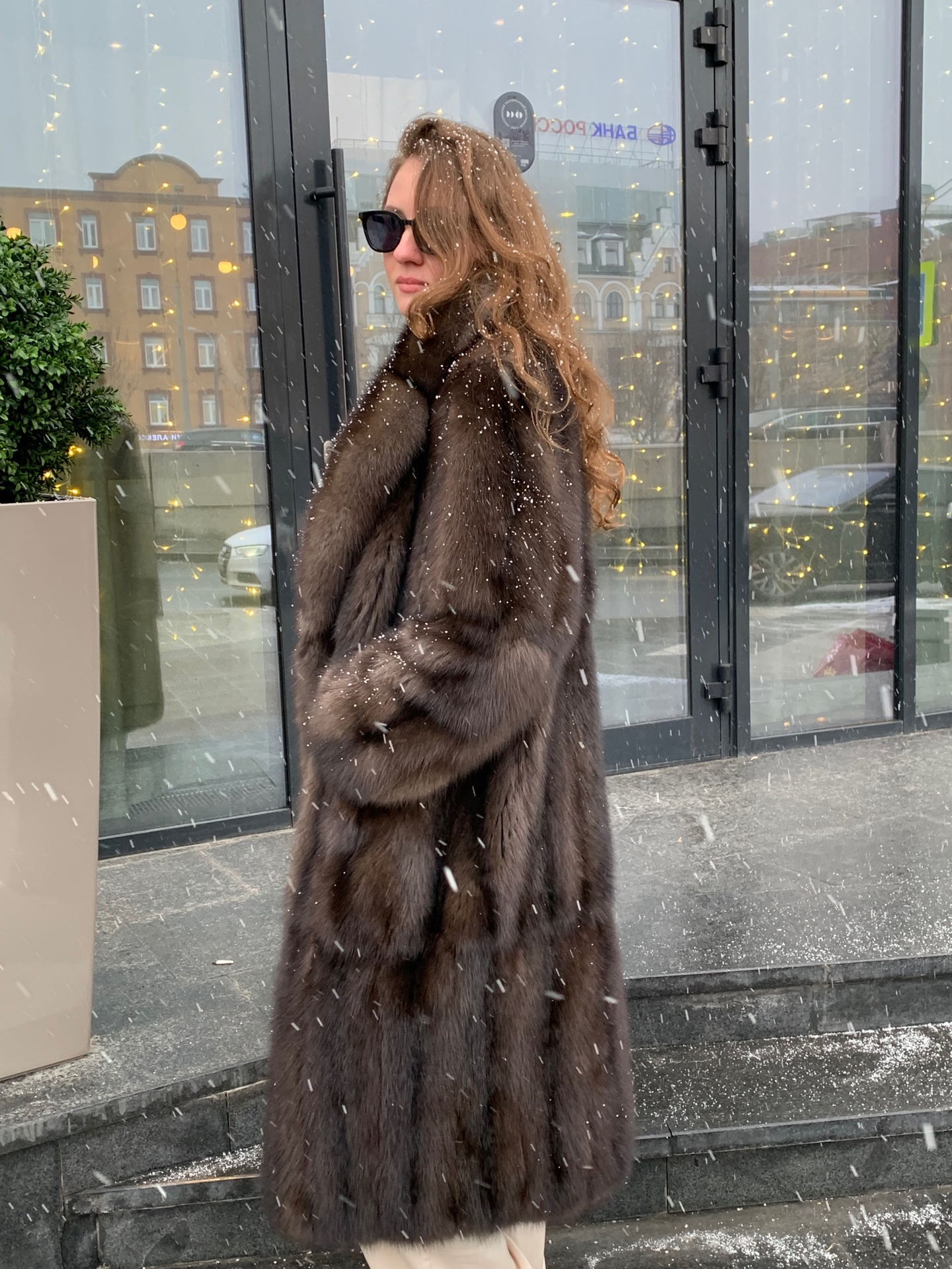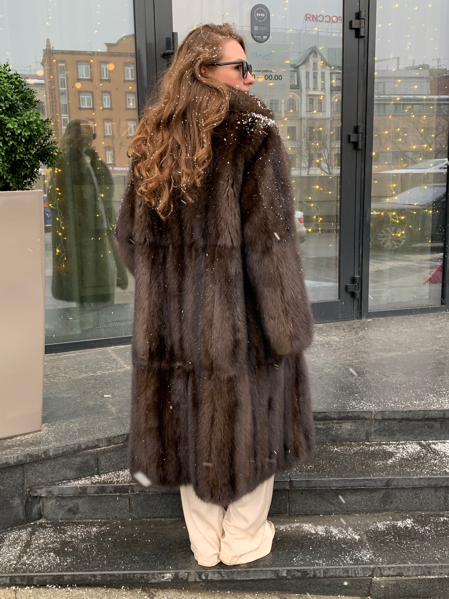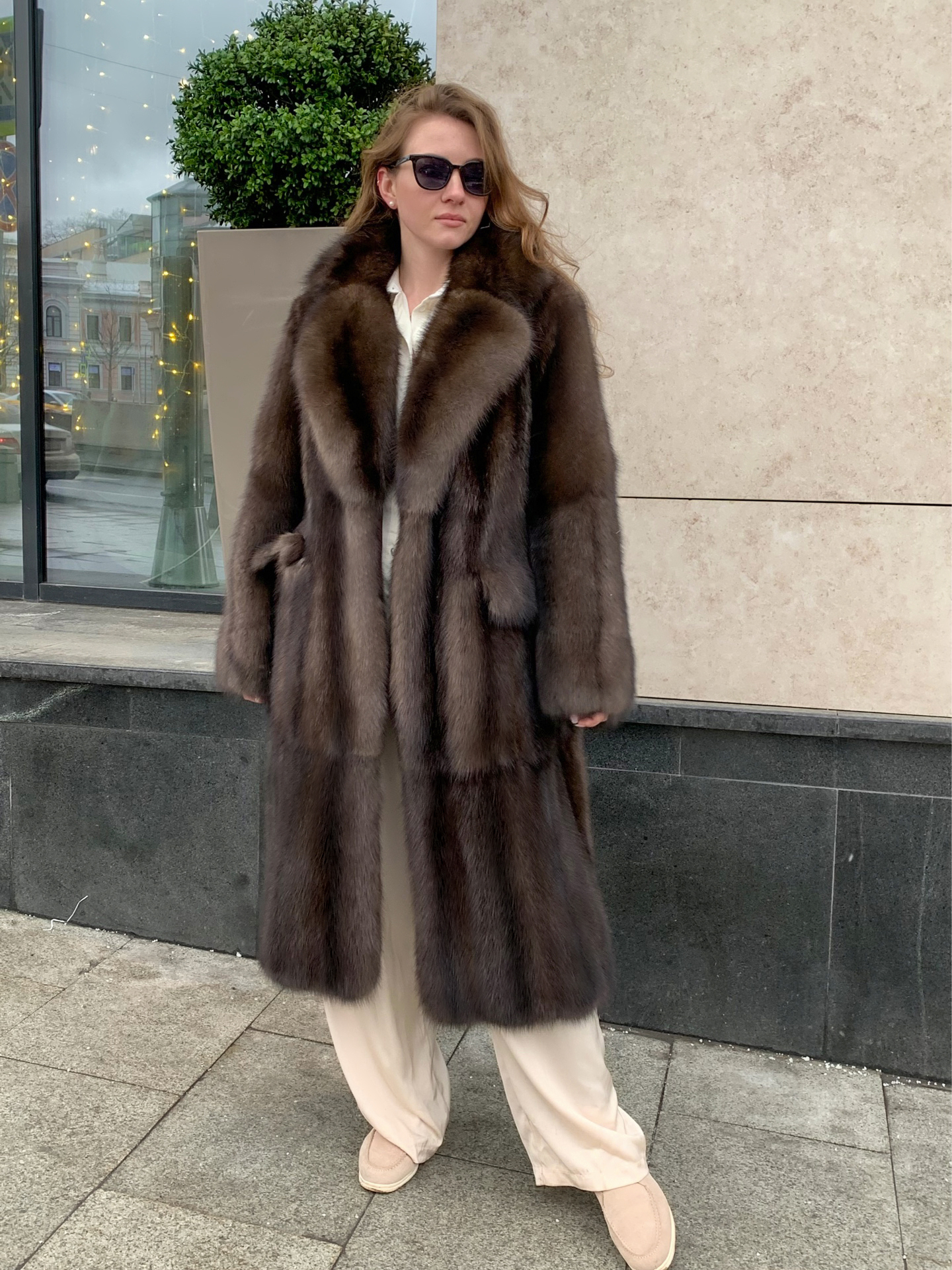 Шуба из соболя 120см в седине 3 диагональная кладь шалевый воротник